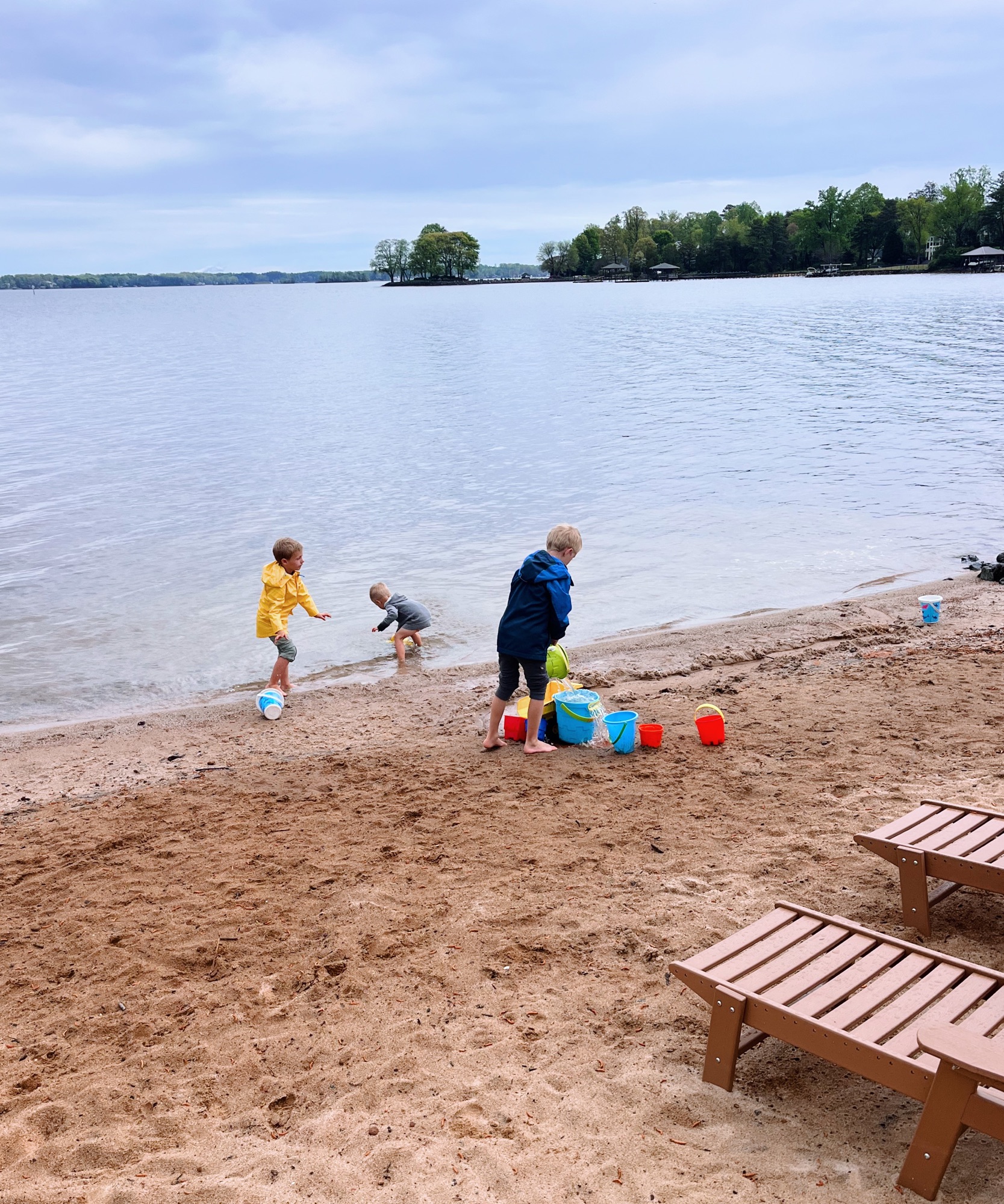 The boys played outside for a solid two hours and had a great time moving from the yard to the driveway to the little beach in our backyard. Outside for our kids is the freaking best because I swear they’re all happier and brother fights are minimal. They often come up with games or “projects” to work on together and yesterday’s imagination project made me smile. They created a “fish hatchery” in the sand for baby fish to hatch and grow until they’re ready to make their way into the lake and swim with the bigger fish. I love their imaginations so much.