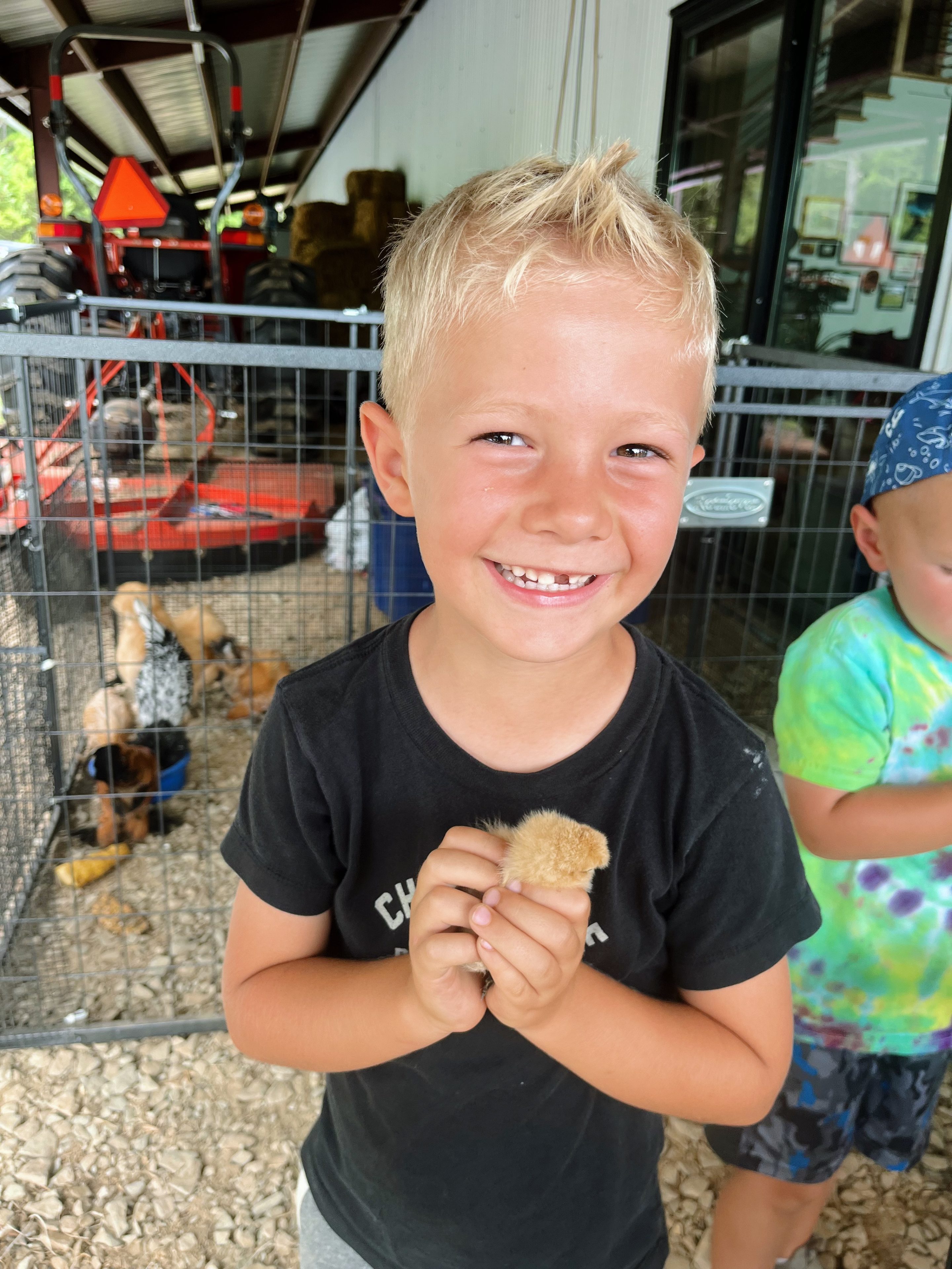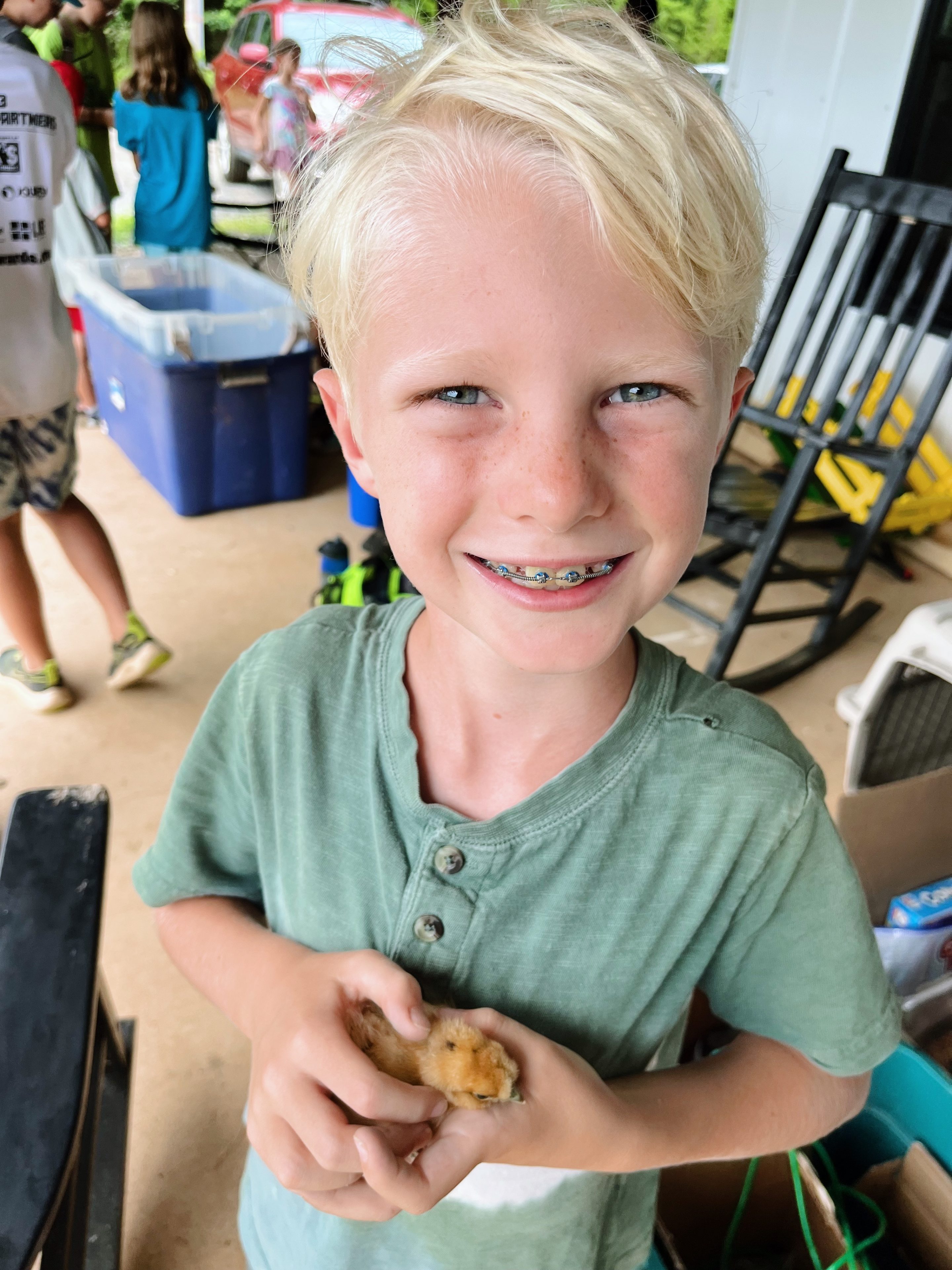 2:50 p.m. We’re off to farm camp pickup! It was “Chicken Day” on the farm and by far Chase and Ryder’s favorite day. They adore chickens and didn’t want to leave!