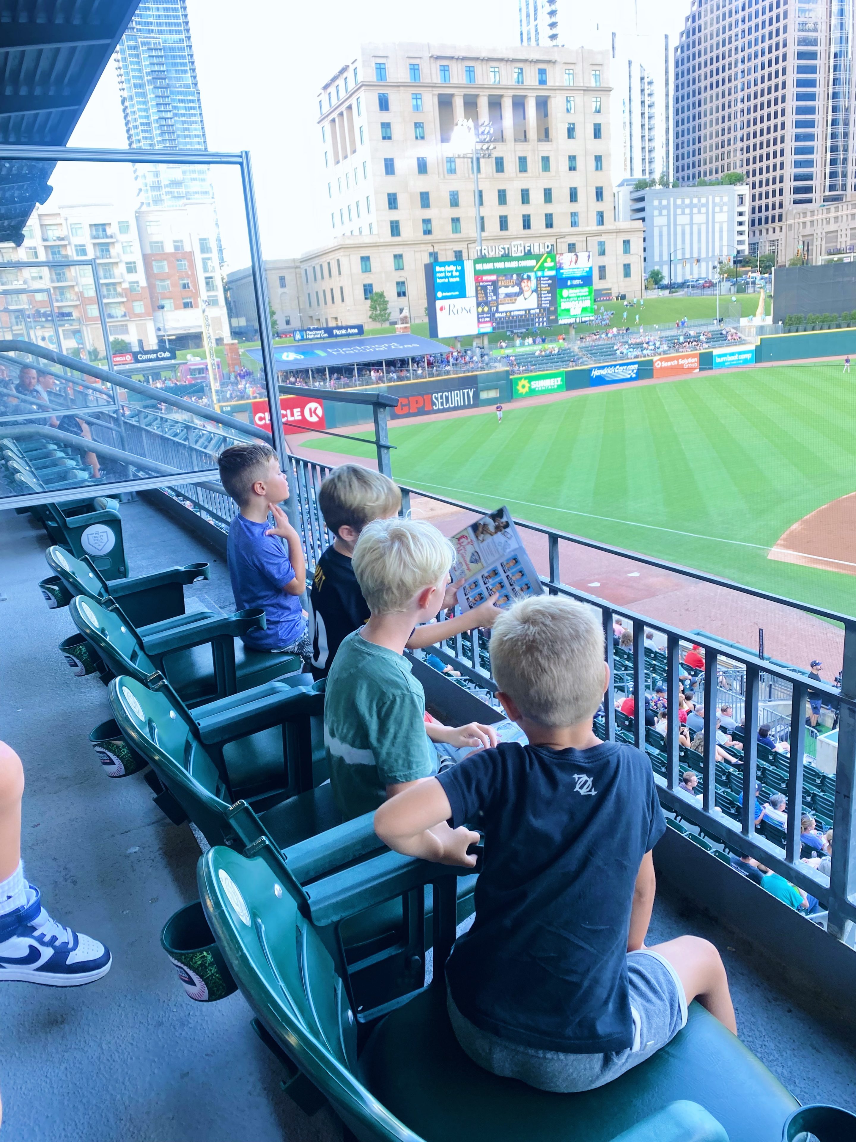 6:45 p.m. Charlotte Knights baseball game! We’ve been to the Charlotte Knights stadium before for their holiday Light the Knights event but this was our first time attending a game!