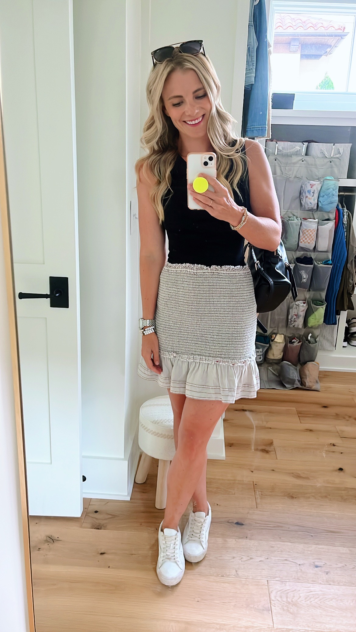 5:40 p.m. Quick outfit change before heading into the city with Ryan and the boys for our evening plans!