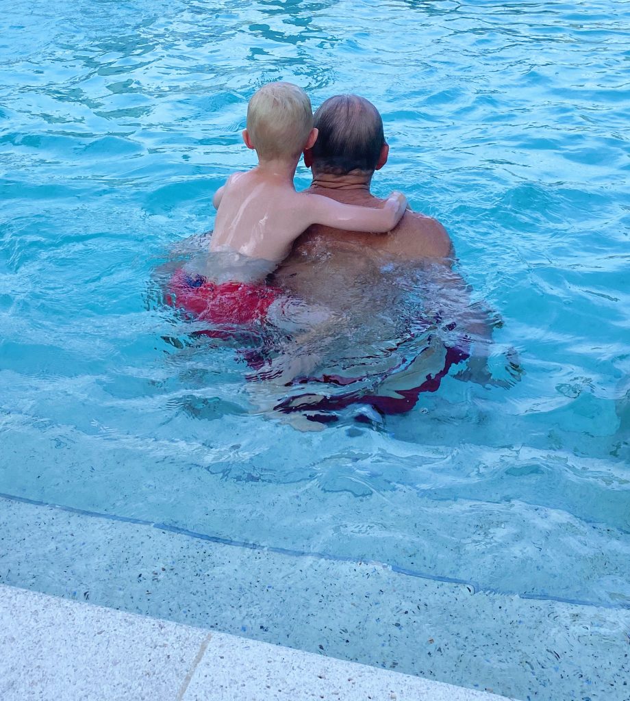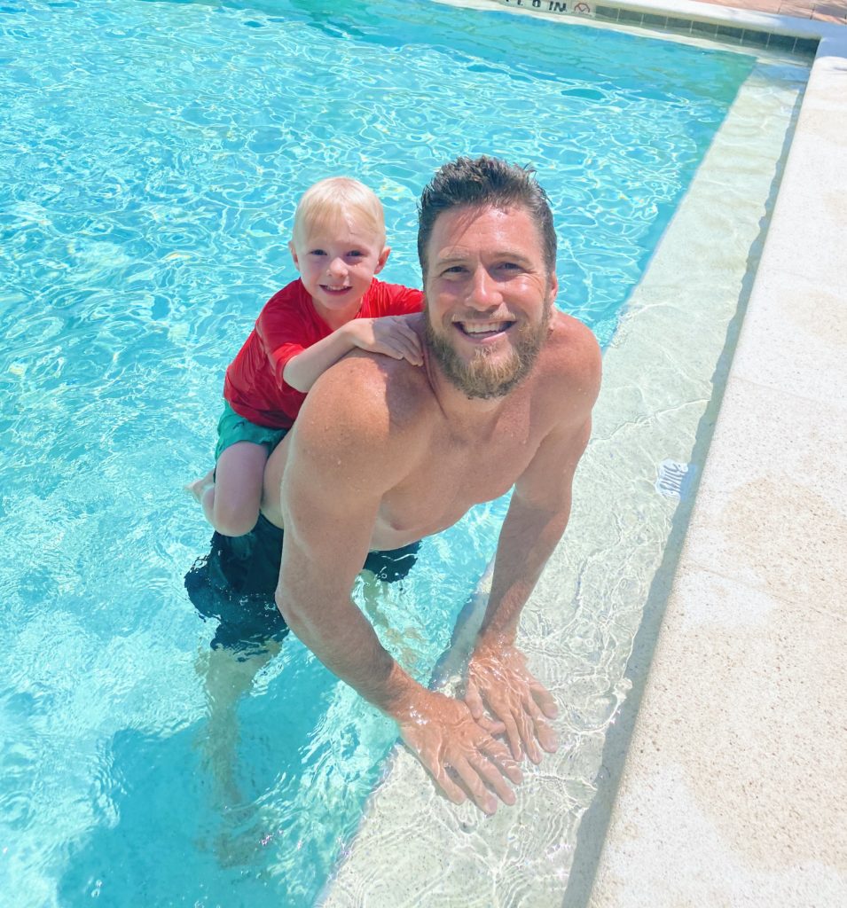 You guys, Ryder is SO into pool tricks with Ryan right now. We call this one “straight legs” and every time it’s over he says, “More, more!” on repeat. These two guys have quite the arsenal of tricks in their back pocket these days and Ryder grins the entire time!