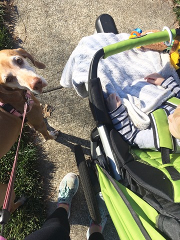 Lunch fueled me through internet frustrations and a brief period of work before Chase told me work time was o-v-e-r and he was up and ready for action. After a quick snack of homemade granola bars for both of us, we leashed Sadie up for a walk because it was sunny and absolutely gorgeous outside!