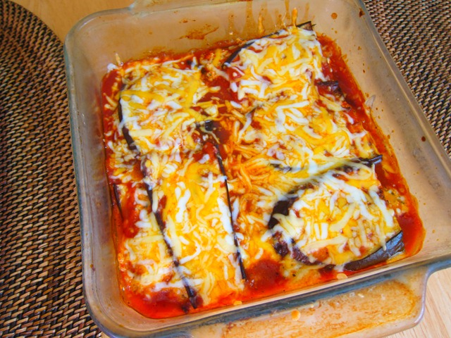 Since we were working around the apartment, we had plenty of time to make a more in depth dinner and when I expressed my interest in veggie lasagna, Ryan was more than game. Unfortunately I didn’t have all the makings for traditional lasagna, but I did have all the ingredients required for roasted eggplant lasagna!