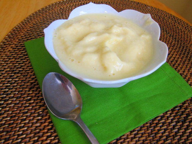 Love the pseudo ice cream idea…frozen mangos make a great substitute too–you can get them already chopped up in the freezer section, and they are nice and cold, sweet, and delicious!