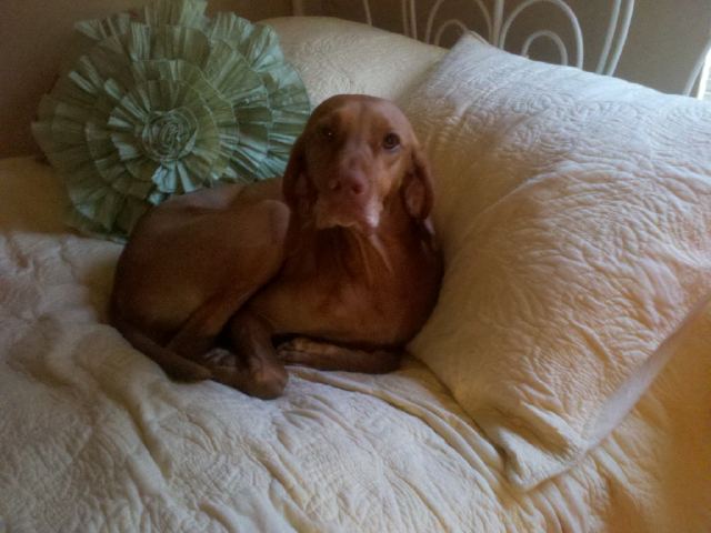 OMG i was juuuuuuuuust thinking the same thing on Wednesday when I was getting ready for work!!! Happy was watching me with *the* saddest puppydog eyes (she can be really good at it…) and it just tore my heart apart! She was all cuddled up on the bed and trying her hardest to blend in with the pillows so that *maybe* I wouldn’t remember she was there and put her in her crate. I hate leaving her to go to work, it’s so hard! I vividly remember thinking as I walked to my car “geez, if it’s this hard when I have a dog… i’m going to have awful guilt when it’s an actual child!” Sigh…
