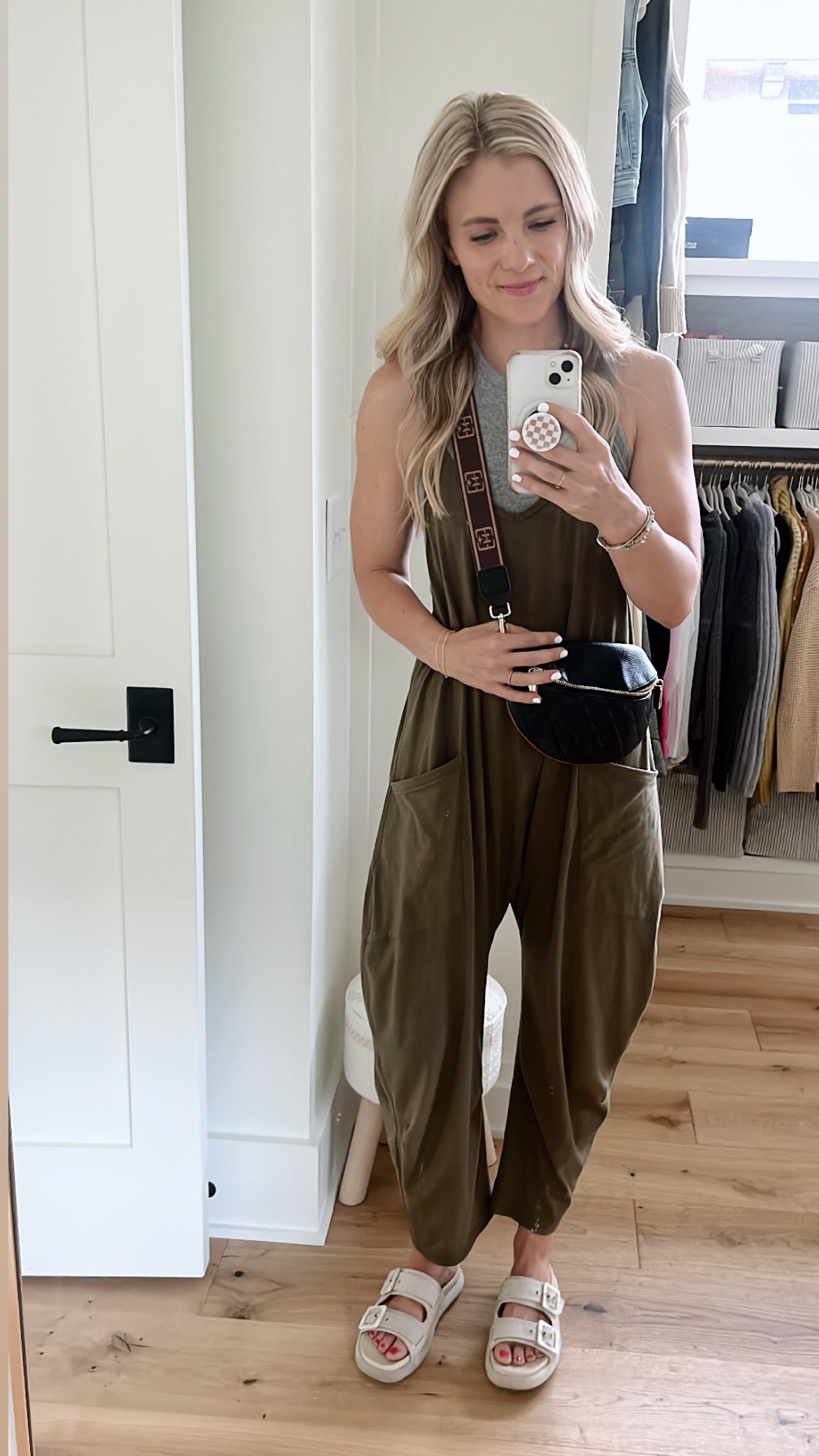 Outfit Details: Tank: Target / Jumpsuit: Amazon / Slides: Sam Edelman / Bag: Amazon