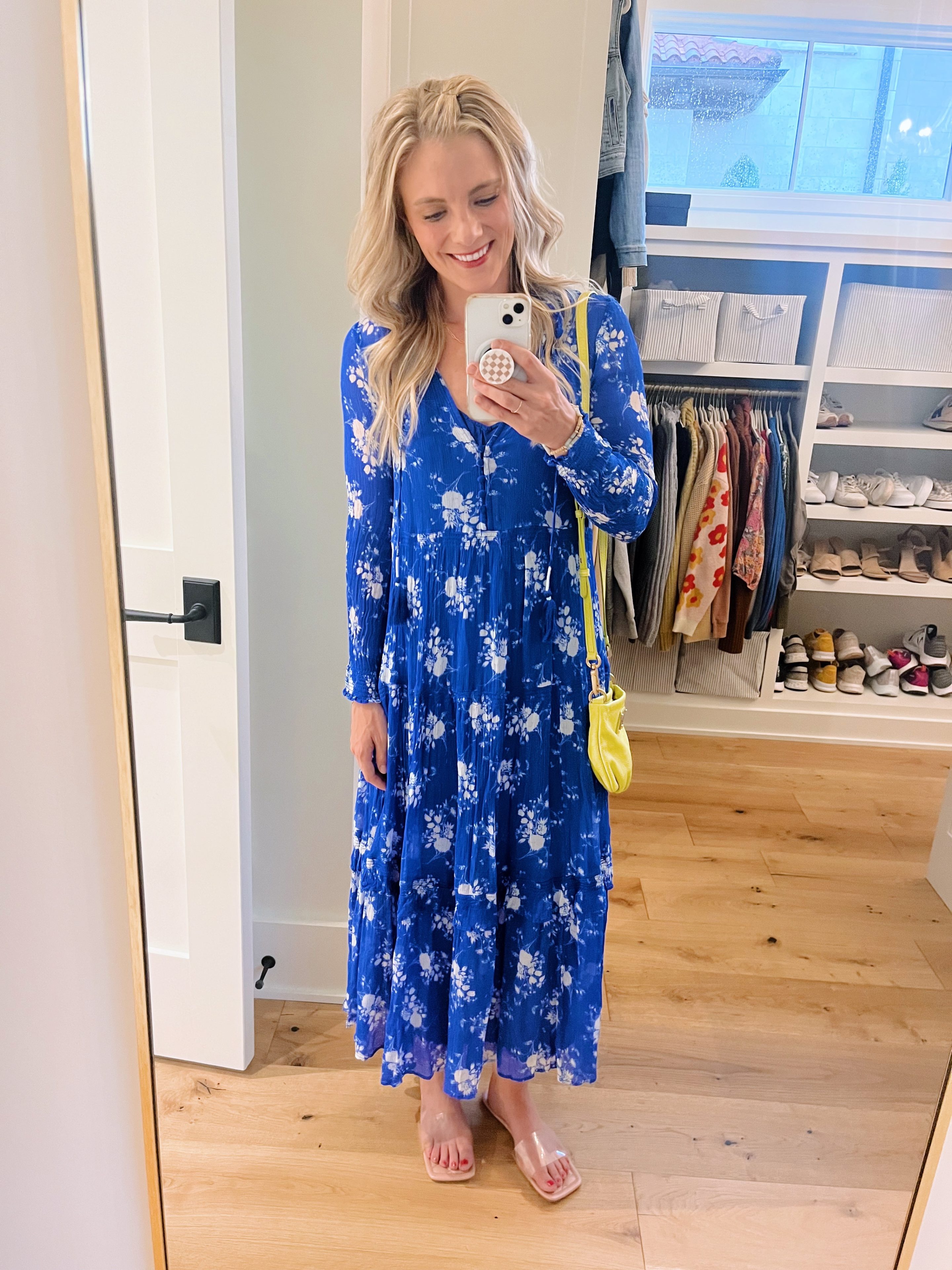 Outfit Details: Dress: Anthropologie (via my Nuuly rental – I debated this one but ended up buying this dress. I’m glad I did because I’ve worn it four times already!) / Clear slides: Amazon / Purse: Marc Jacobs via ThredUP