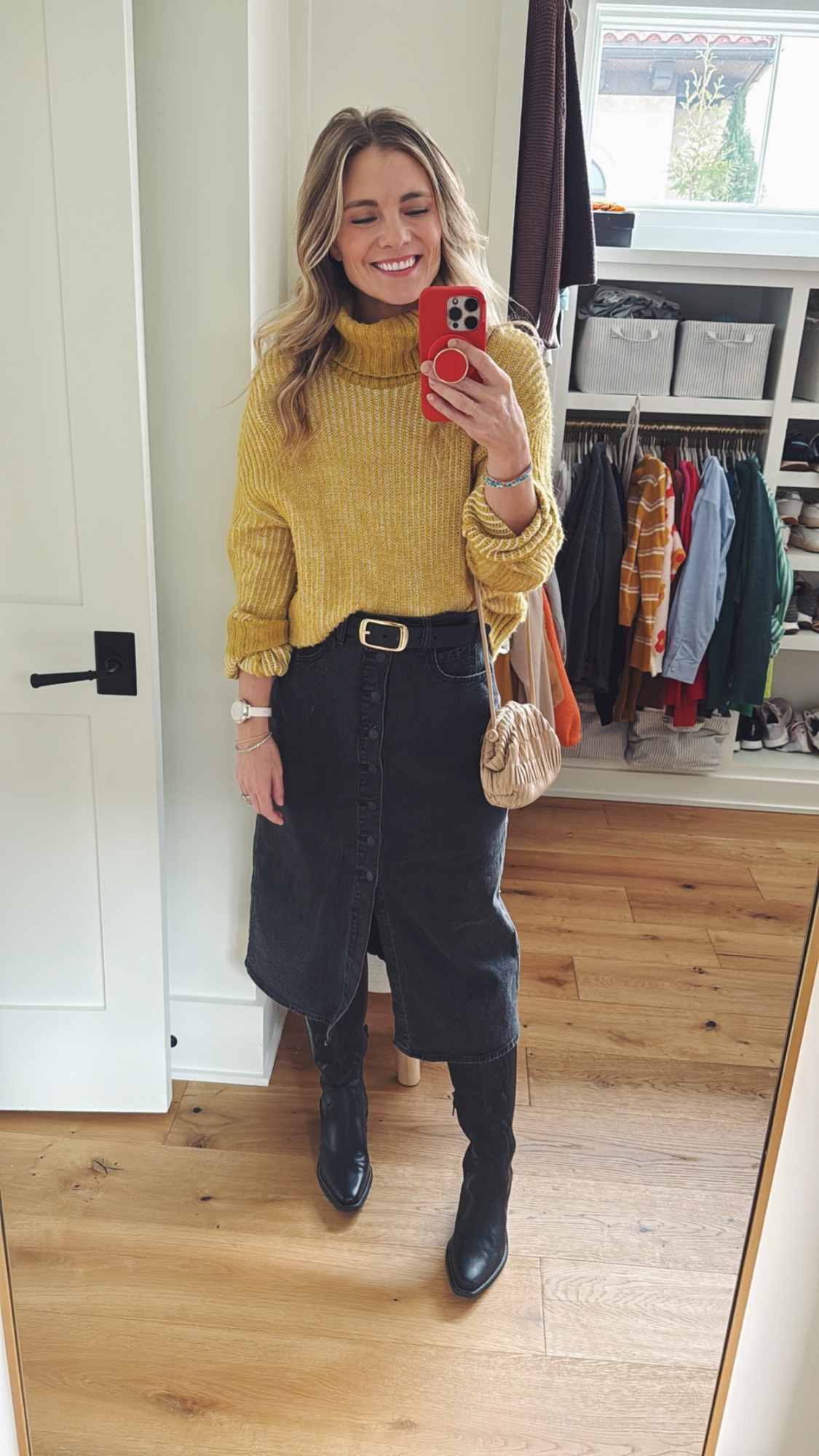 Outfit Details: Skirt: Target / Belt: Amazon / Sweater: Old Navy (but old) / Boots: Target / Bag: Mode Luxe (via Stitch Fix) / Watch: Garmin / Bracelets: Gorjana