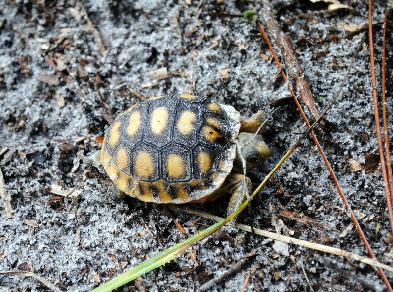 We saw a bunch of turtles in the nearby spring, two tortoises and an itty bitty baby.