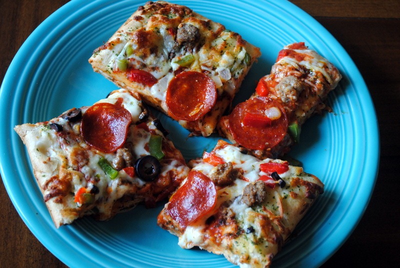 It’s hard to find a good frozen pizza! I get some from the farmer’s market and freeze them for quick dinners. They’re 50% whole wheat, cracker-thin crust (just the way I like them), reasonably priced, and in a bunch of different varieties. Much better than anything I’ve ever found at the grocery store!