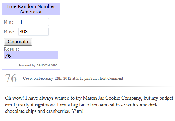 Mason Jar Cookie Giveaway Winner