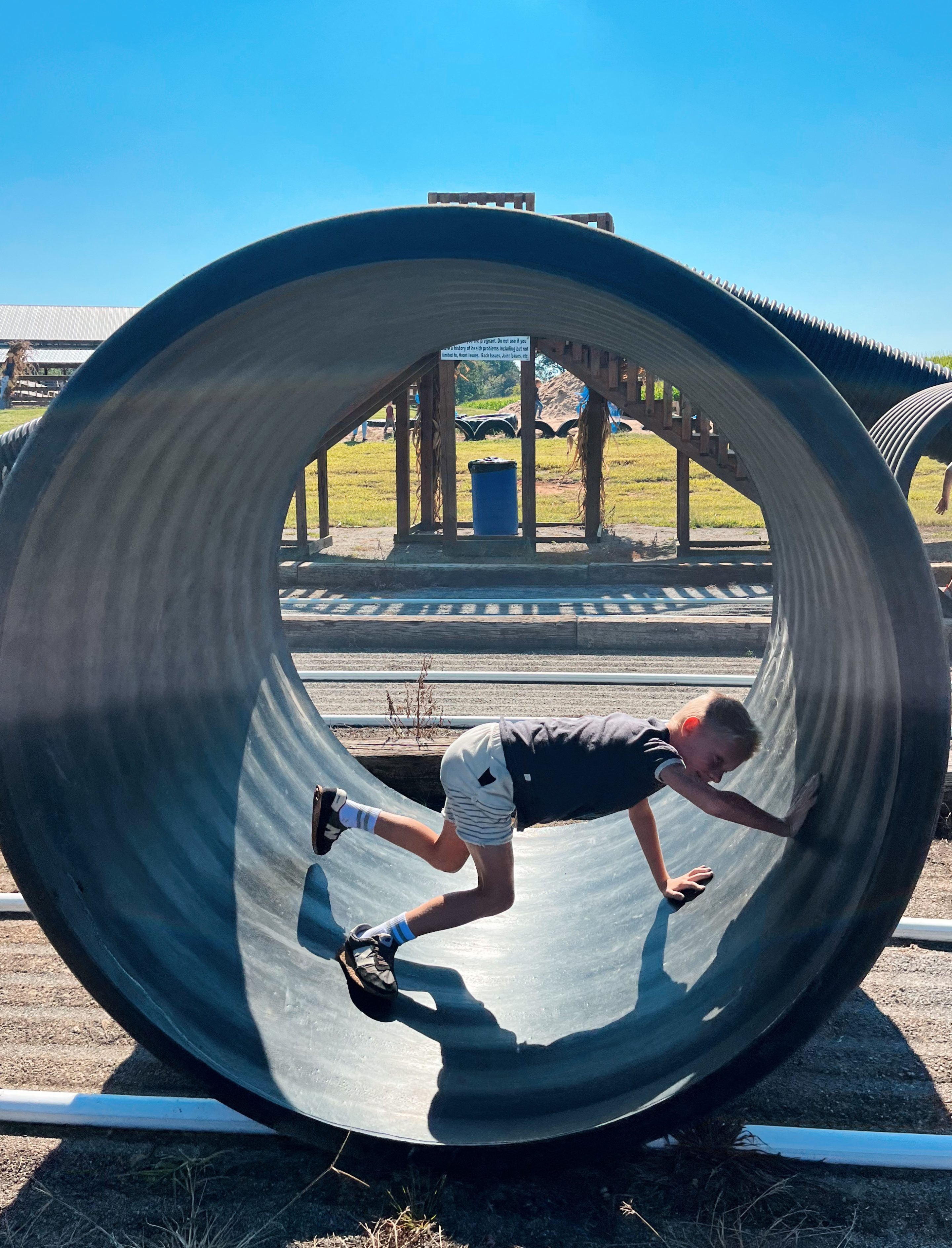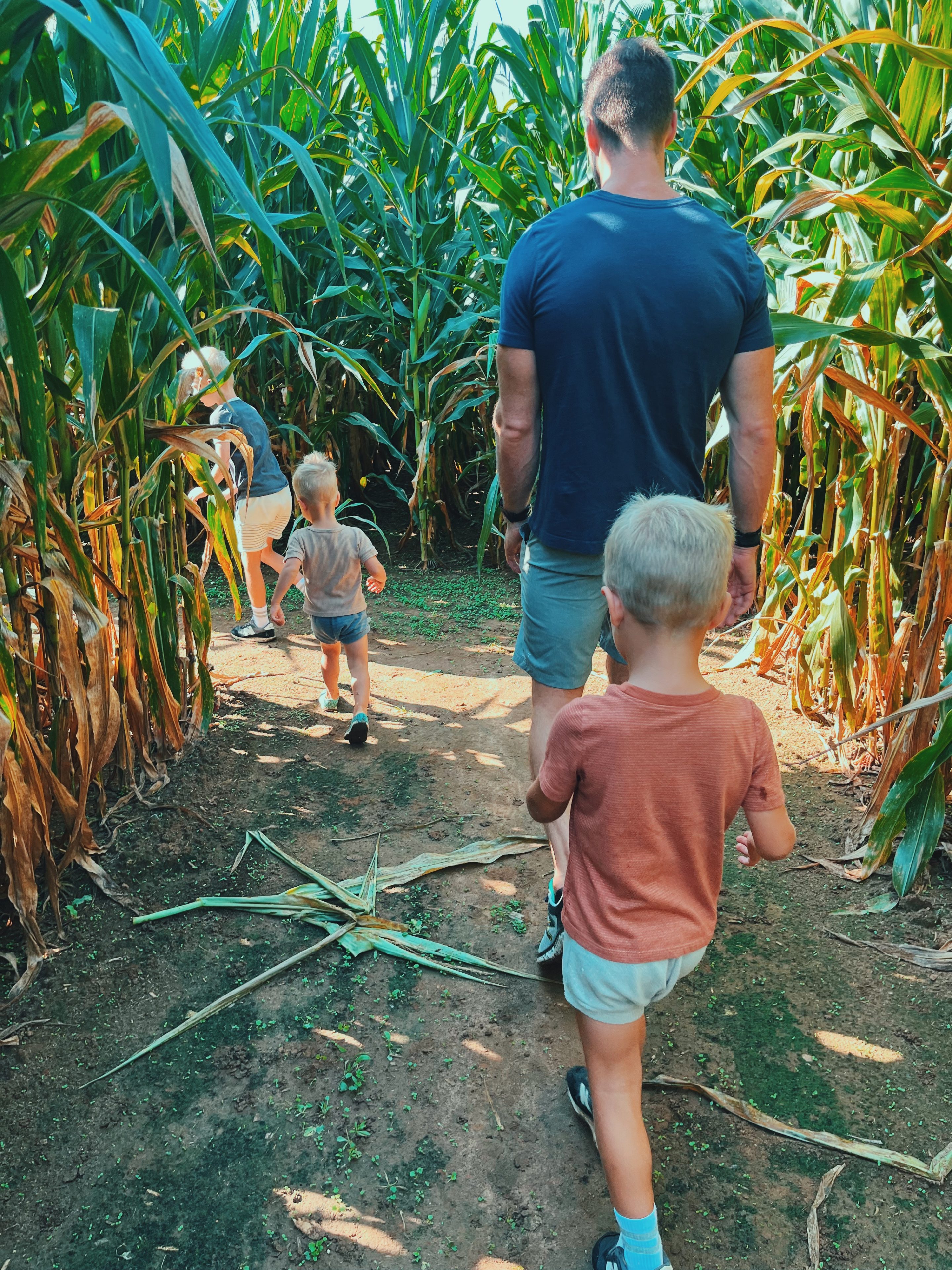 We timed our arrival with the opening of the corn maze and immediately headed into the maze to see if we could conquer it before moving onto the other activities. The corn maze at Alpha & Omega is legit — we’re talking seriously challenging, especially if you don’t scan the QR code and look at the map ahead of time — and our boys loved meandering through the enormous cornstalks. I think I heard them yell out “DEAD END!” when we reached a turnaround point and “ALERT! ALERT!” when they’d see a fallen cornstalk a million times. We all did a serious victory dance when we finally emerged from the maze’s exit.