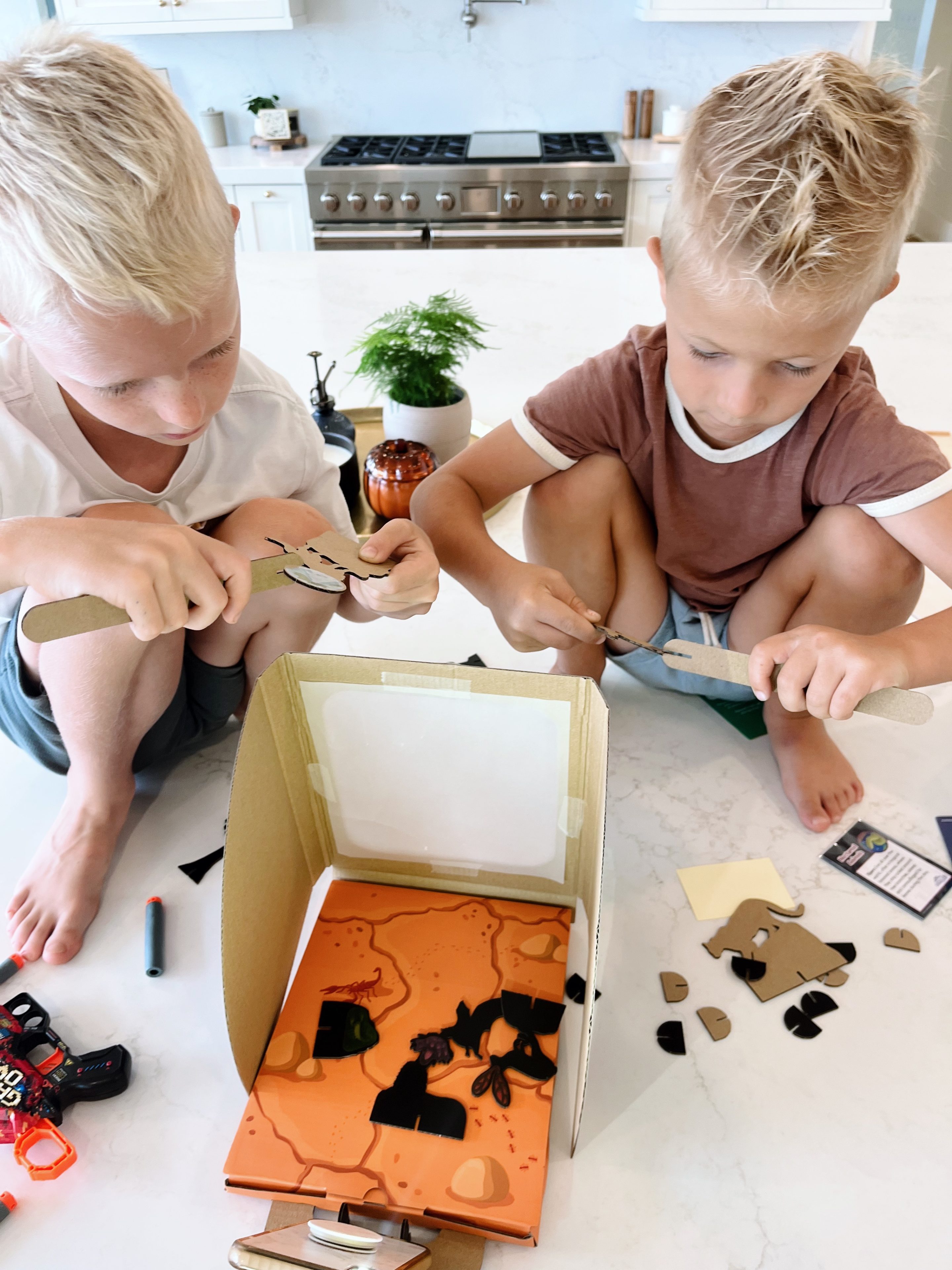 First up was assembling and painting a bird house from a Highlights Kit followed by a nocturnal animal shadow puppet show from Little Passports’ Science Junior Kit.