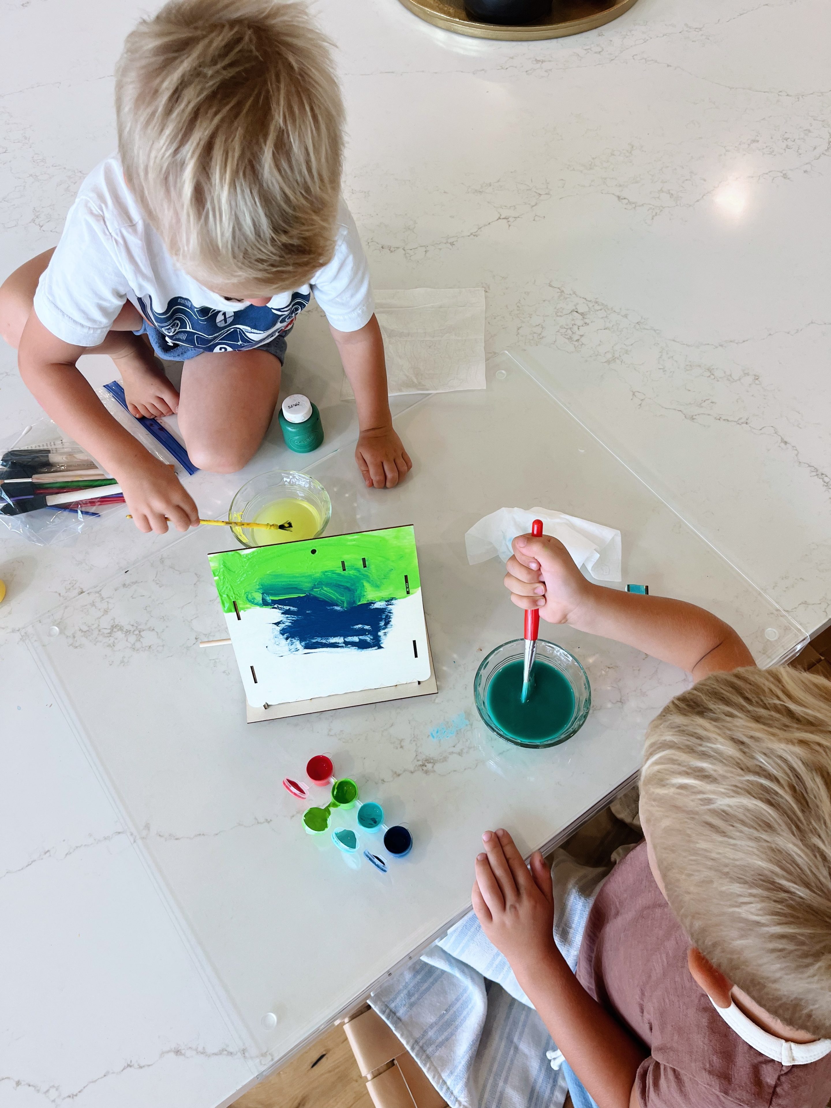 Both kits were a hit and entertained the boys for quite a while! The only thing that broke their concentration was a quick hair cut break with Dad which ended up making Ryder awfully happy because he walked away with a lightning bolt in his hair courtesy of Ryan.