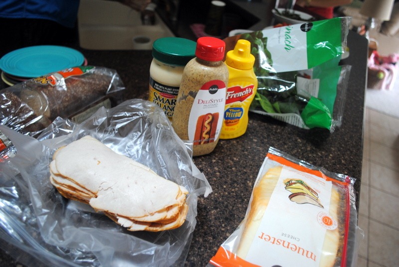 Since we were all hungry, Leslie and I set up a a little make-your-own sandwich buffet.
