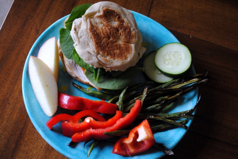 I made myself a turkey and cheese sandwich on a toasted English muffin.