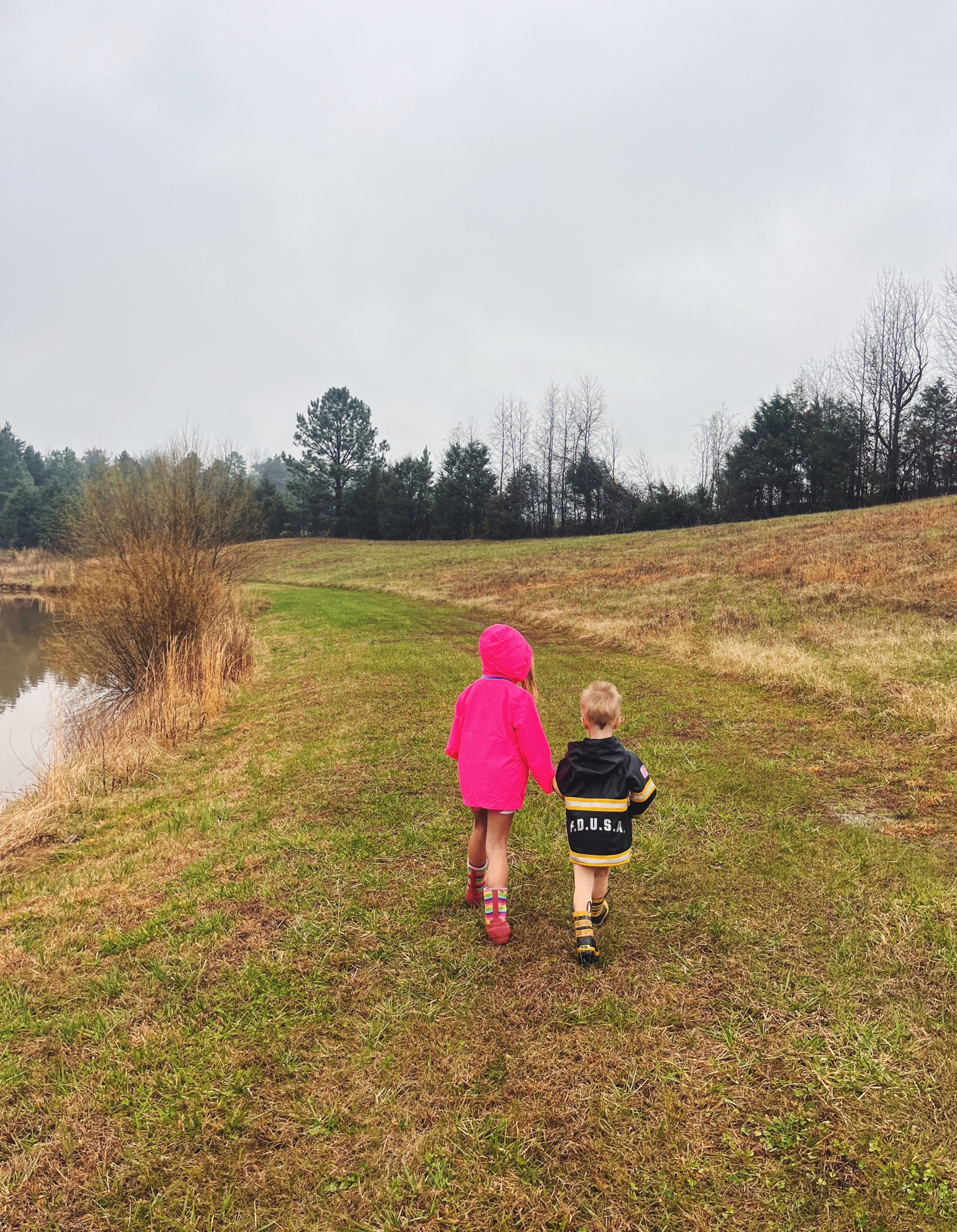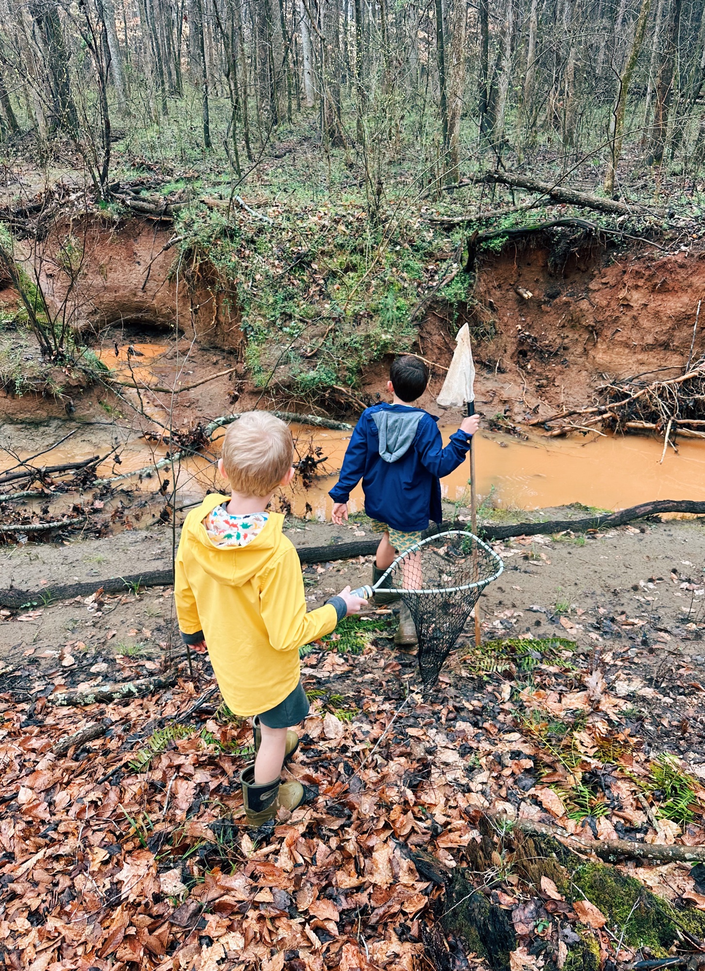 We drove about 40 minutes north to my friend Danielle’s house where our boys were in heaven with her two kids! Danielle and her husband live on several acres with a pond and a creek on their property which is right up our outdoor-loving boys’ alley.