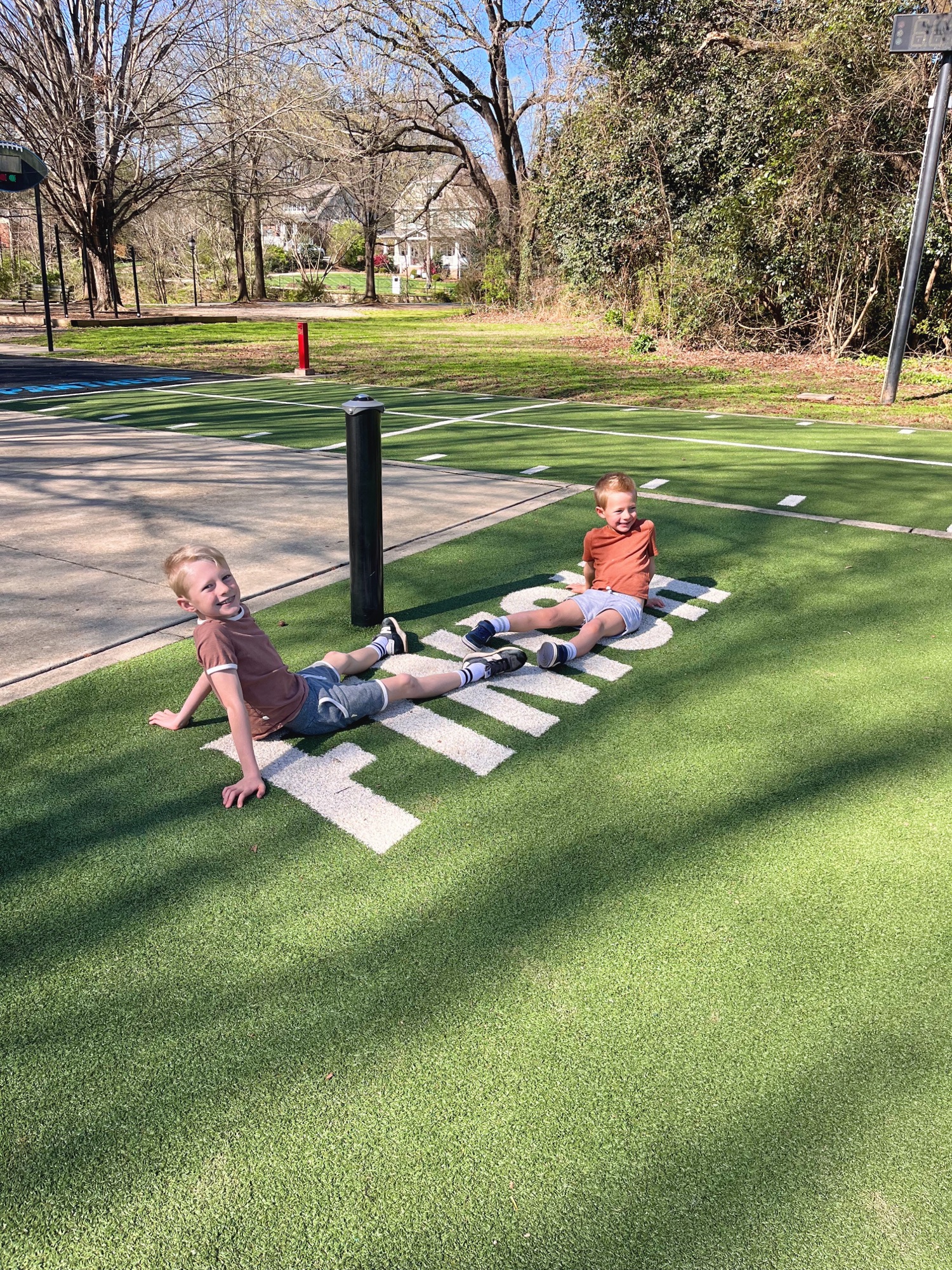 We spent a solid two hours at the park walking around the small lake, playing on the playground and watching the boys fly through the Carolina Panthers-themed obstacle course at least 10 times.