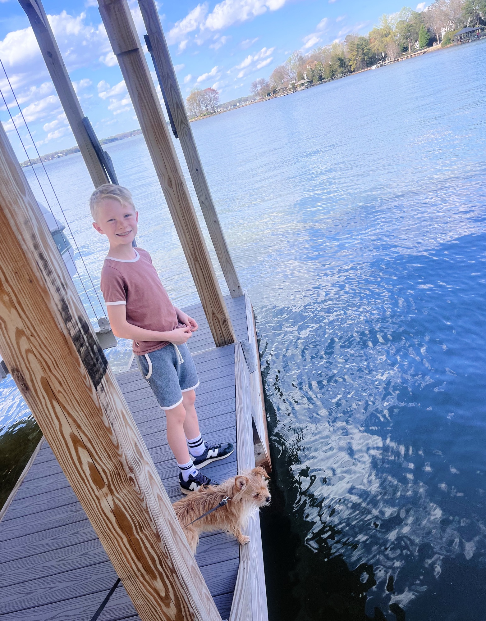 By the time we made it home, we were more than ready for lunch and after refueling, we made our way back outside to play in the yard. When Chase had the idea to take the boat out for our first boat ride of the year we were all about it!