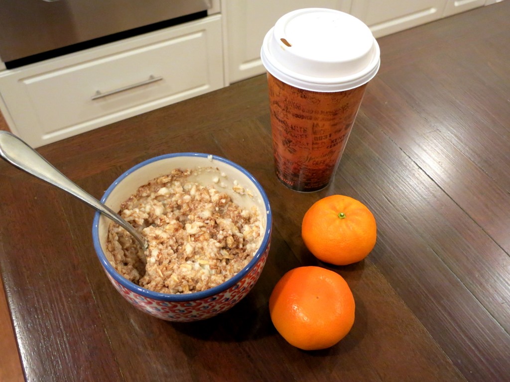 I added almond butter and lots of cinnamon to the mix which made it taste fantastic! I served my bowl of oats with two clementines and a decaf caramel almond milk latte that I nabbed from Madalyn’s on my way home.