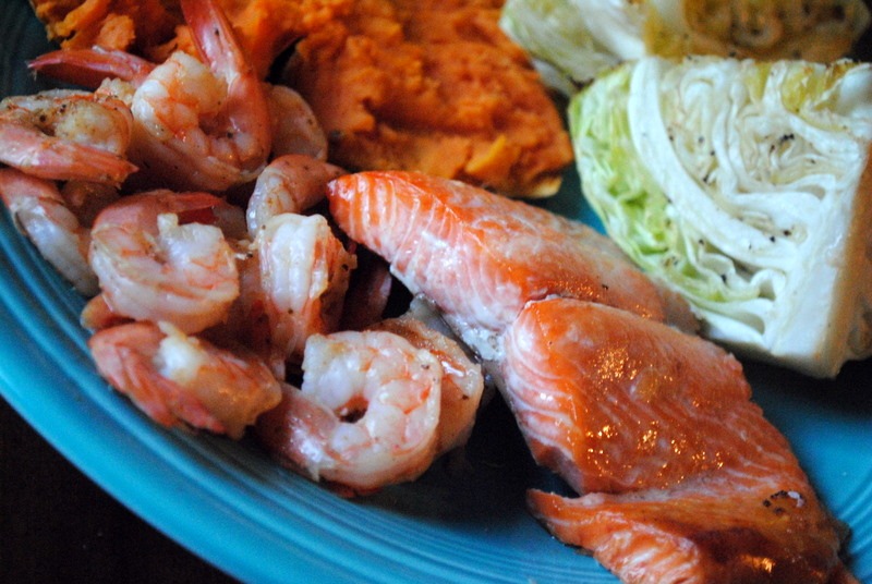 oh man, i’d be in love with this dinner too!!! shrimp & salmon are easily two of my favorite seafoods, and i LOVE sweet potatoes. i’m sure i would love the roasted cabbage too… i need to buy cabbage more often. it’s a veggie i always forget about. i’m sure i would love it roasted though – i pretty much love every and any veggie roasted!