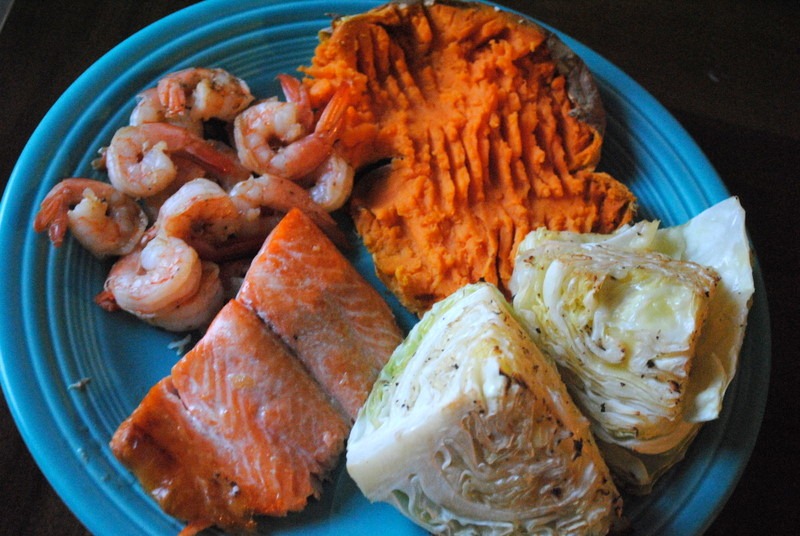 Ryan and I ate the cabbage alongside broiled salmon, shrimp sautéed in a bit of butter and Old Spice and a small sweet potato.