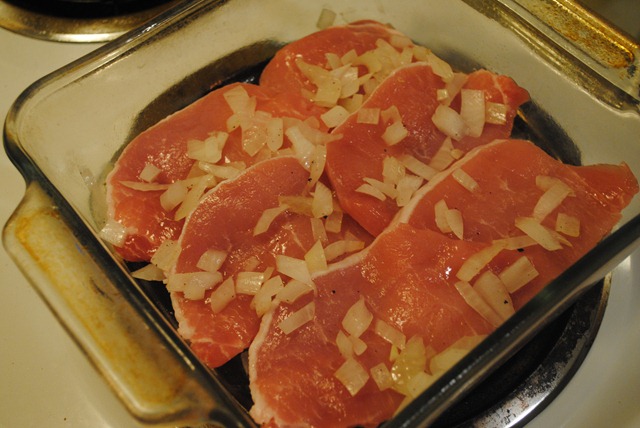 My hubby likes this meal, but we saute the onions and apples together and throw it on top of the chops when they’re done! Delicious!
