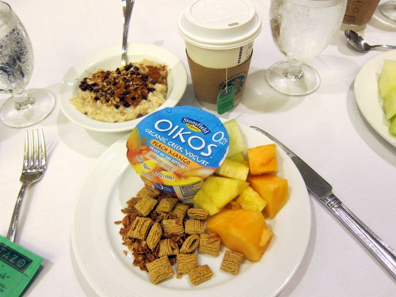 Thankfully a breakfast buffet provided by Quaker greeted us upon our arrival back at the hotel and I loaded up!