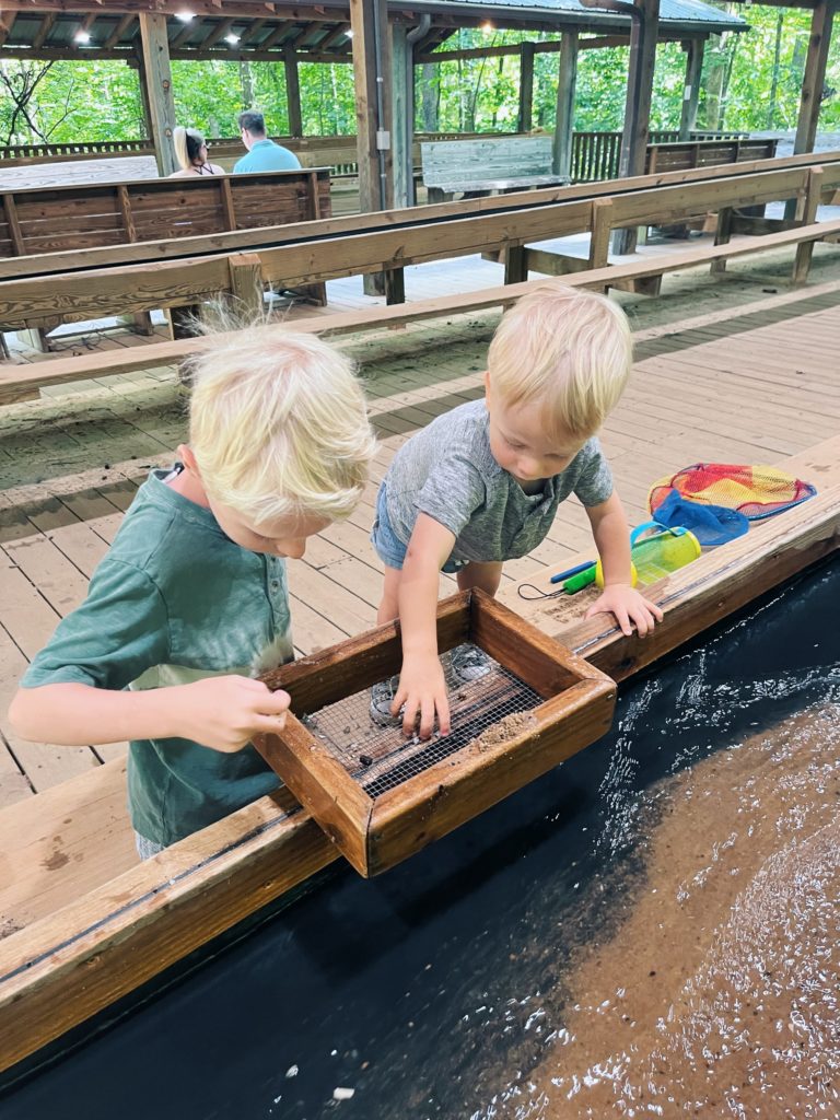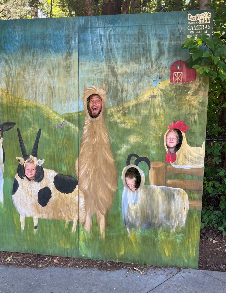 We had a day planned at Dan Nicholas Park, one of our favorite parks I’ve raved about on the blog a time or two. With Ryan’s only request for the day being that we spend lots of time outside, Dan Nicholas Park fit the bill since it offers a little bit of everything — playgrounds, a mini zoo, gem mining, train tides, a reptile house and more.
