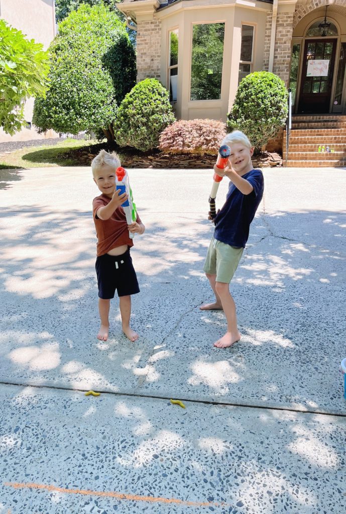 Something about our simple Saturday birthday party at home served as a perfect reminder that kids don’t need the fancy, schmancy Pinterest-perfect kid birthday parties we see all over social media — complete with balloon arches, catered meals, party planners, the works — to have the very best time. Sometimes all you need is a water blaster and a fake slimy slug.