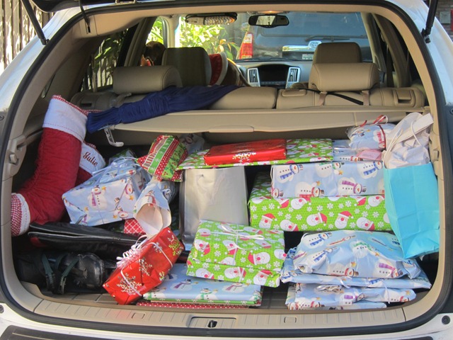 Judging by the look of my jam-packed car, Ryan and I apparently think we’re Santa and Mrs. Claus.