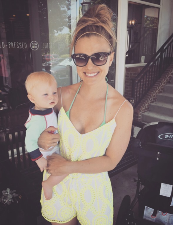 After his and hers workouts (I headed off to boot camp after Ryan’s gym workout), we spent a few hours at home where I worked on yesterday’s Father’s Day Gift Guide and Ryan did some yard work as Chase napped. Once our little man was up and ready for action, we drove to Birkdale Village for Chase’s first experience at a splash pad!