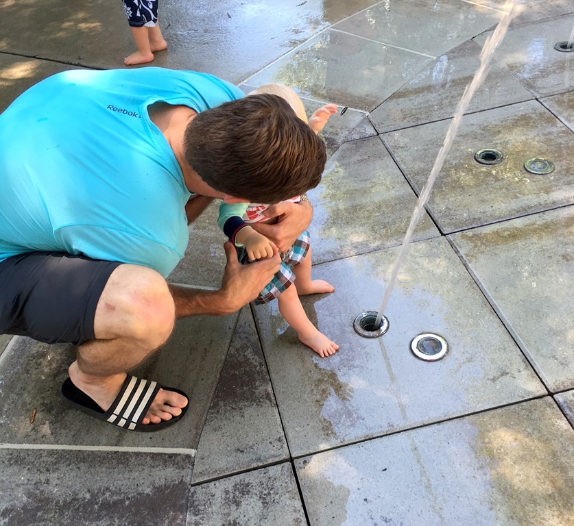 We spent a few more minutes lounging with him on a bench along the perimeter of the splash pad so he could watch the other kids play which seemed to suit him well.