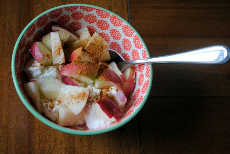 Even though I wasn’t really hungry, I made myself a small bowl of ricotta cheese cheese topped with a chopped apple and cinnamon about 30 minutes after lunch because I was craving an apple like mad!