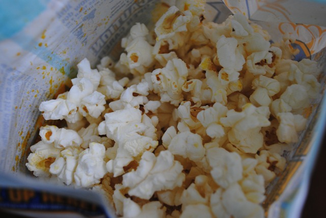 I pulled the chicken using two forks and placed it on a piece of Nature’s Pride whole wheat toast. I topped the chicken with honey mustard and added some broccoli slaw to the mix to get some veggies in my meal.chicken sandwich 003On the side I enjoyed a small bag of Pop Secret light butter popcorn. Sadie helped me with that one. 😉 chicken sandwich 011 Right now I’m blogging from the backyard and am loving this weather. It’s warm, but not sweatin’ hot, which suits me juuuust fine.