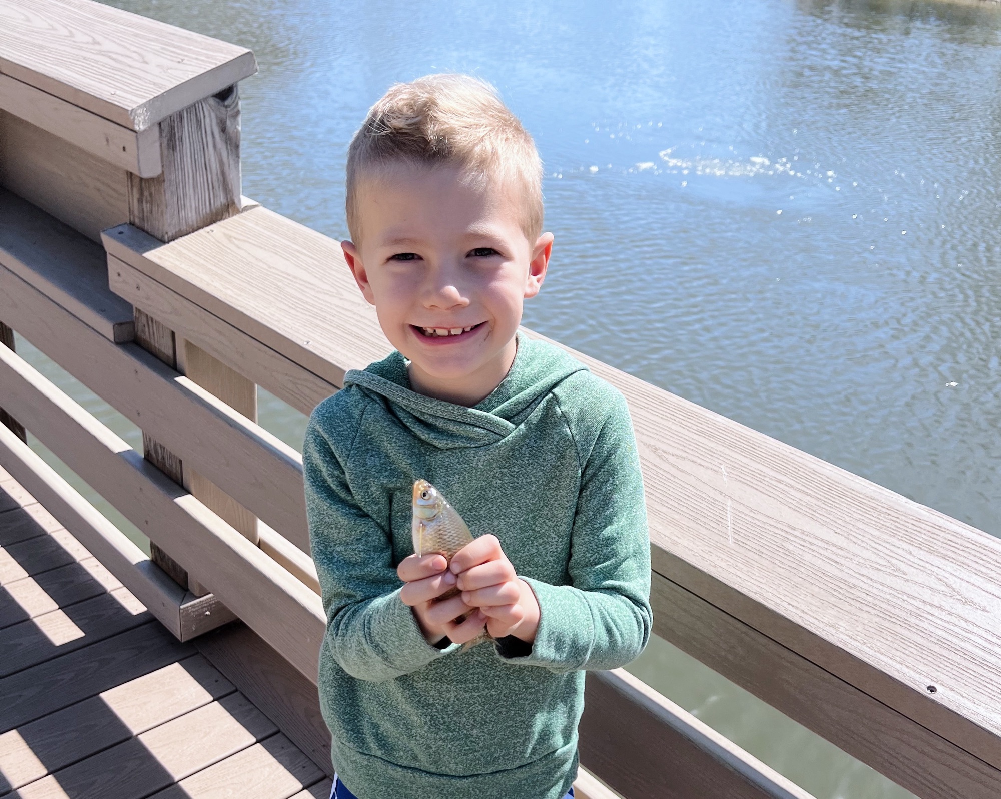 The art teacher at the big kids’ school has a “fish wall” of pictures of students with the fish they’ve caught. She told Ryder she’s been saving a spot for his fish picture right next to Chase’s photo so we had to go fishing and make it happen this weekend!
