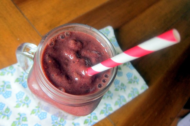 Now that it’s actually starting to feel like Spring around here (bah, Canadian weather) I’ve been loving smoothies for breakfast or for snacks! I’ve never tried a berry-based one – I usually use banana. But since i’m out of frozen bananas right now and can’t seem to let them ripen enough to freeze…I’ll have to try berries instead 😉