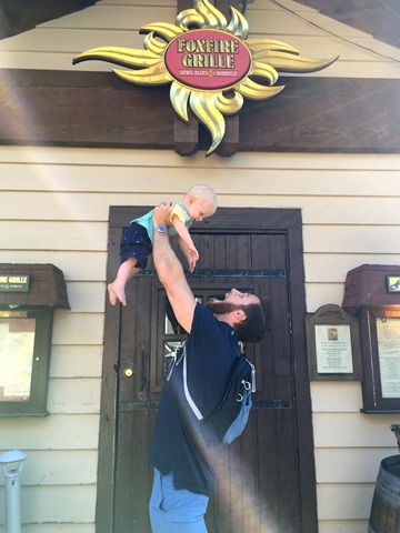 I love visiting destinations that allow you to walk everywhere and once Chase was awake again, we headed out with our little guy and walked into the village to grab dinner at Foxfire Grille.