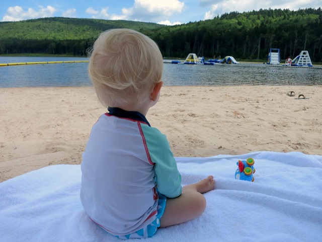 Once we were done swimming, we hung out on the shore for a little while until we knew Chase was in need of a late afternoon nap. We took the ski lift back up to the top of the mountain but not before we heard the lift attendant yelling after us. Apparently Ryan’s wedding ring dropped out of his backpack (he always takes it off to swim and work out) and she was kind enough to send it up the lift in a bag behind us. Since we’ve already replaced Ryan’s ring once before when it fell off in the lake by our house, we were obviously quite grateful to her! Phew!