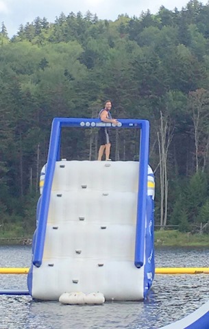 Ryan and I took turns sitting on the shore with Chase and cheering each other on as we attempted ridiculous water tricks on the trampoline and had way too much fun on the giant slide. It felt like summer camp for adults and we had a blast!