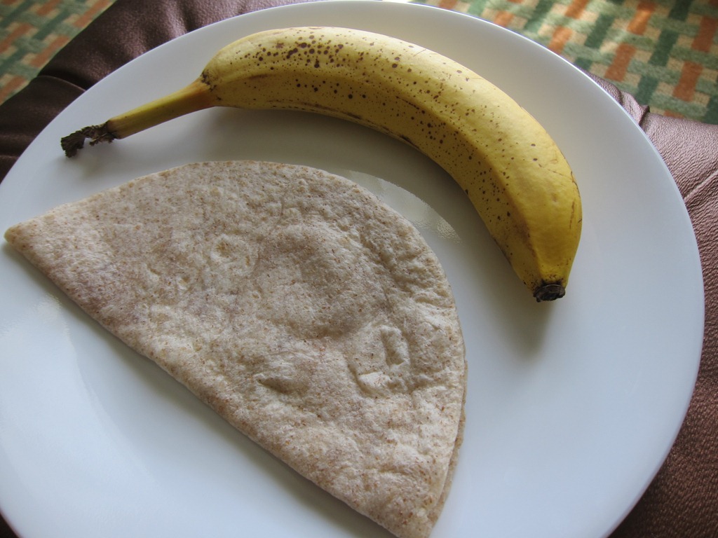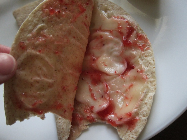 A cheese and jelly microwavable quesadilla and a banana did the trick.
