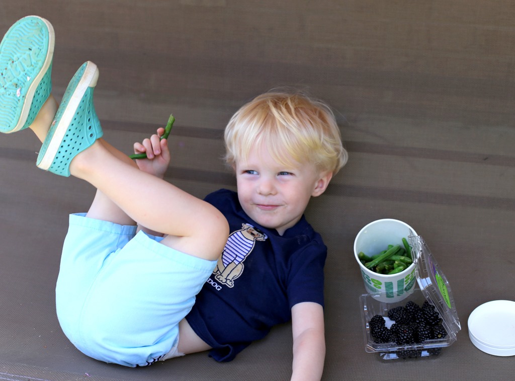 By the time we made it home, Chase, Sadie and I were all itching to get outside, so we played at Chase’s water table, threw the frisbee for Sadie and ate lunch together on the patio swing. (Well, my lunch was more of a Lunch 1.0 and consisted of a bunch of Chase’s Simple Mills crackers with cheese.) With rain anticipated in Charlotte most of the day today, we wanted to take full advantage of the sunshine yesterday!