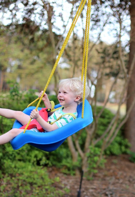 I worked until Chase had other plans for me and once he was up, we read some stories before Chase asked for an early bath and “jammies.” This meant we ended up playing in our pajamas in the backyard once Ryan got home from work and undoing all the cleanliness from bath time but Chase had a BALL on the swing and challenged Dad to 5,000 running races in the grass.