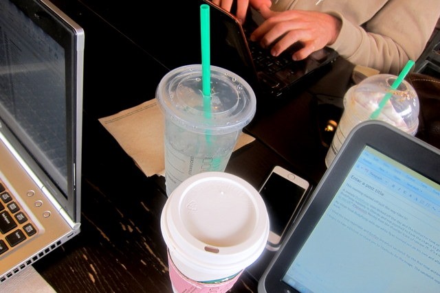 My sister took BodyPump with me while Ryan worked out on his own and after the class, the three of us headed to Starbucks for breakfast and each set up a little station to work. ![]()