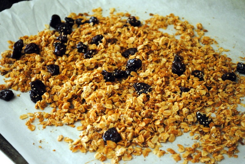 I made a batch of granola with the dried cherries this evening and snacked on a couple of pieces of the almond brittle for dessert.