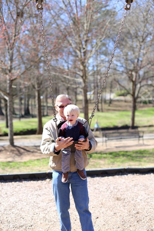 What a beautiful weekend with your parents and those pics of Chase with his grandparents are just adorable! He’s gotten so tall! His feet look like they almost touch the ground in the kiddie swing!