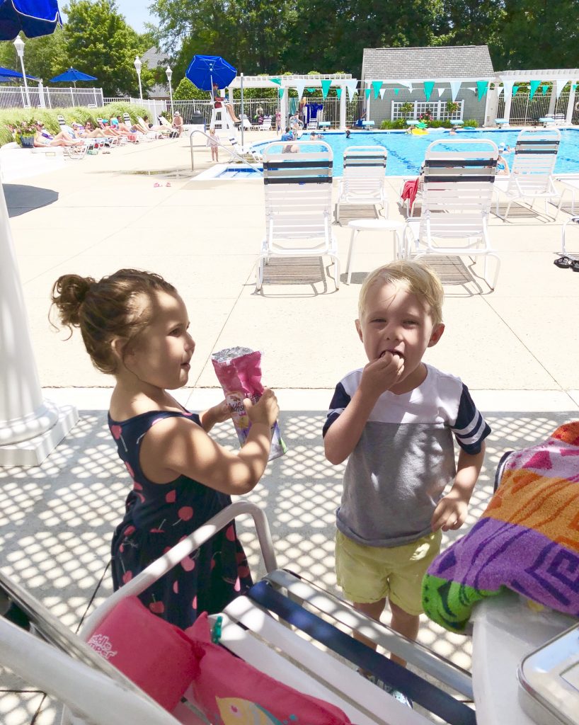 We stayed at the pool for nearly three hours, swimming, snacking and soaking up the sunshine. I am so happy to report that the swim lessons we started back up for Chase have really been paying off because he was all about practicing his skills and putting his face in the water which was previously unheard of for him. Progress!