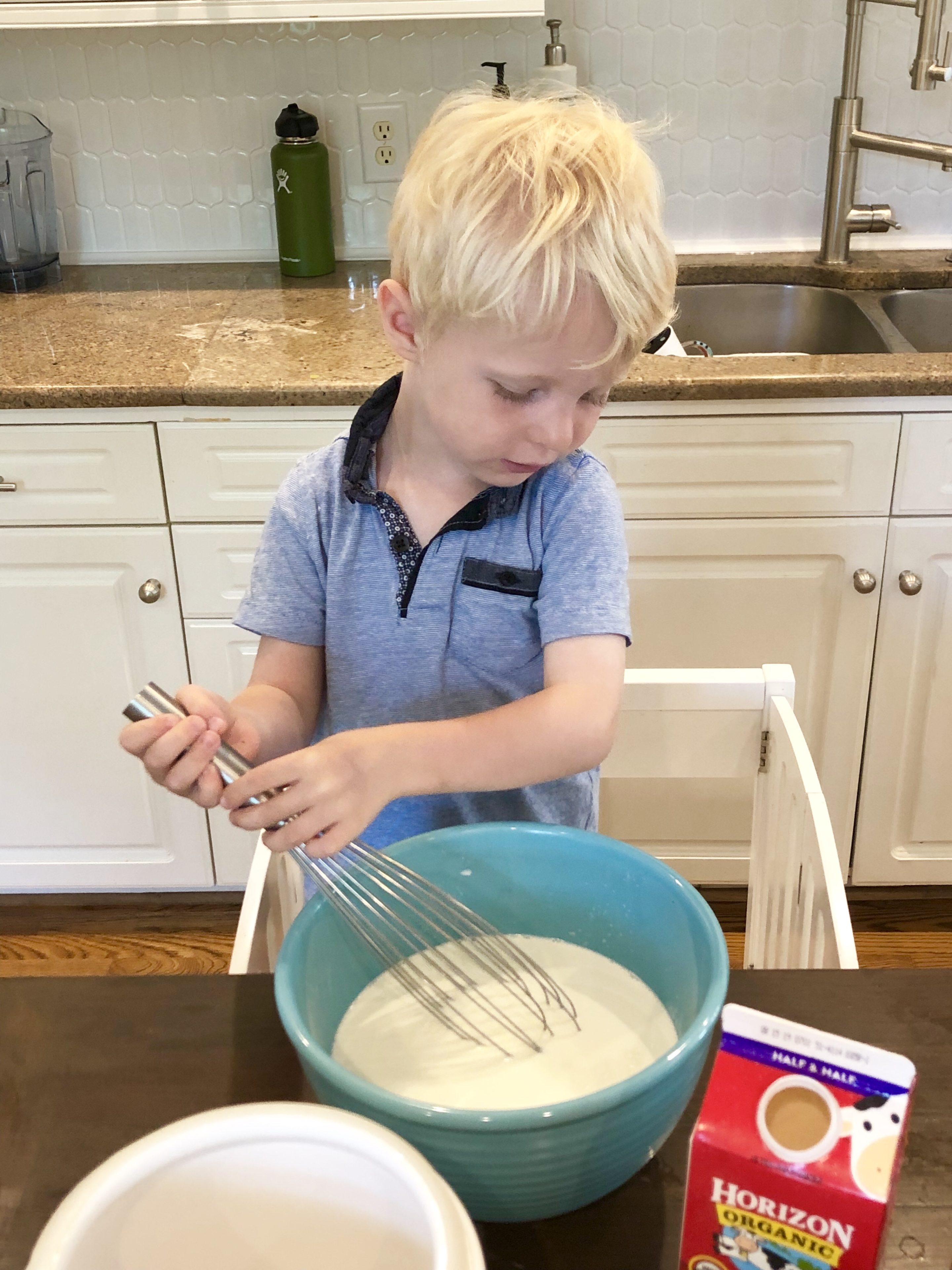 The boys are seriously loving the MyGym classes in our area and Ryan and I appreciate the ability to take both boys to the same class during their Sunday morning siblings class. They had a blast running around and practicing their gymnastics skills before it was time to go. We made a quick pit-stop for doughnuts on our way home (breakfast 2.0!) and then Chase helped me with my first attempt at homemade ice cream!