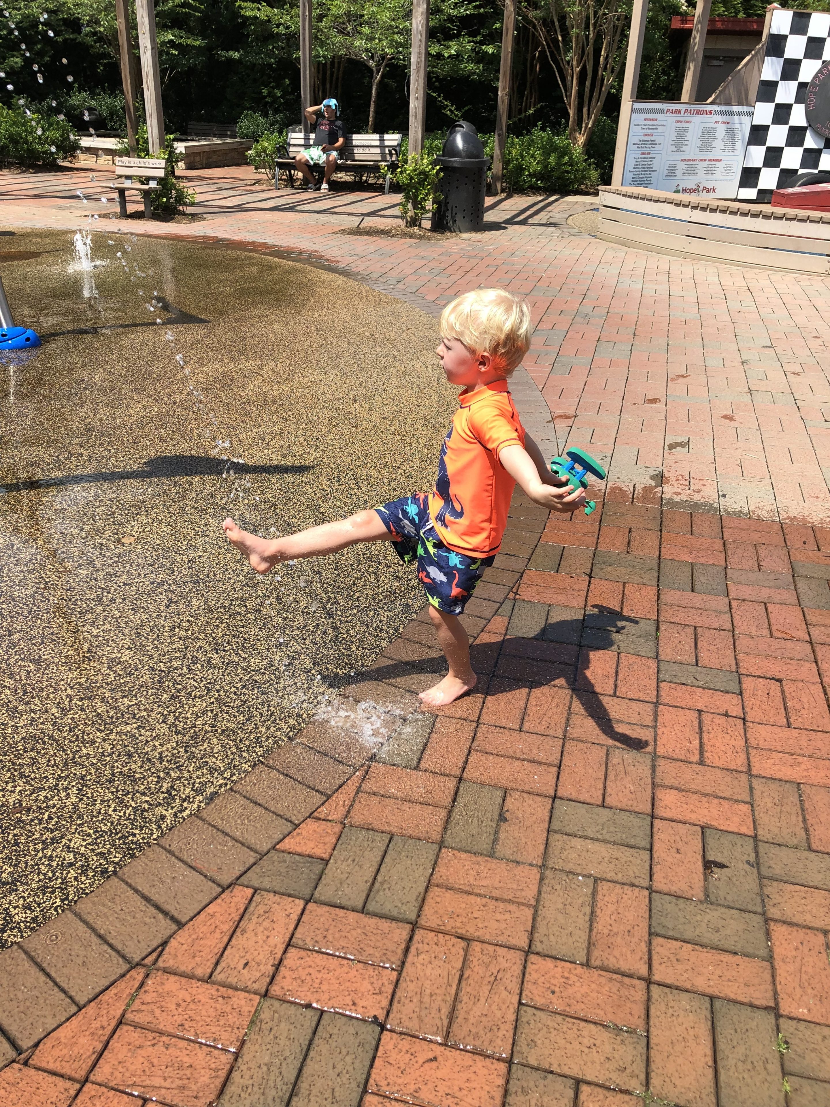 On our way back home, we made a stop at Hope Park in Mooresville so the boys could run around and splash in the splash pad.