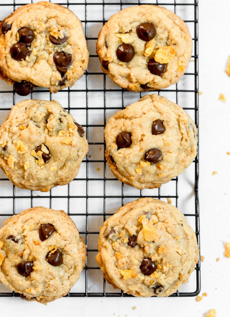 Packed with rich chocolate chips and crisp Corn Flakes cereal, these Chocolate Chip Corn Flake Cookies are soft and buttery and the perfect cookie to have on hand when your sweet tooth is begging for something deliciously different!